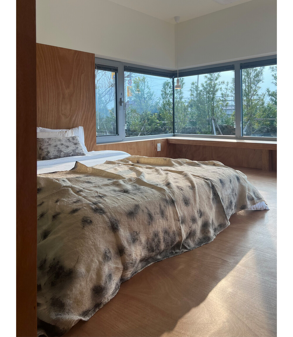 * leaf’s drawing fabric piece는 식물의 색소와 반응하도록 작업되어 있습니다.
