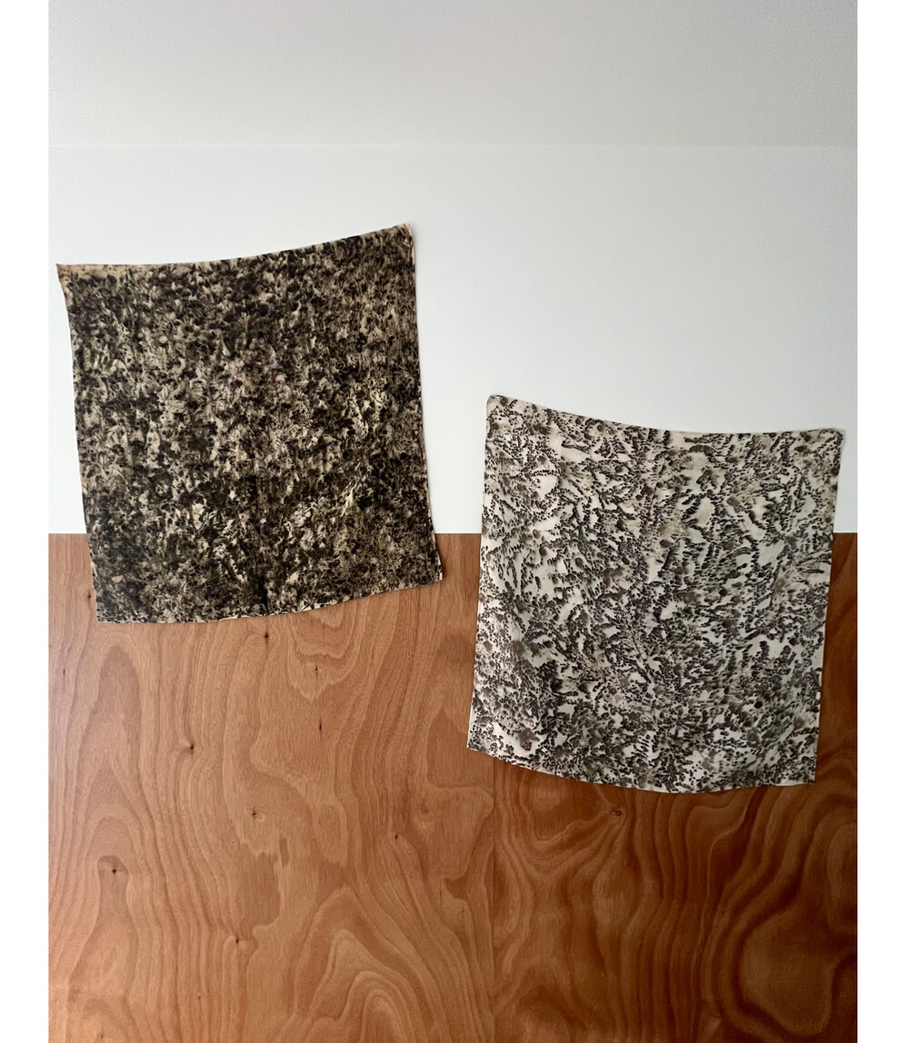 * leaf’s drawing fabric piece는 식물의 색소와 반응하도록 작업되어 있습니다.